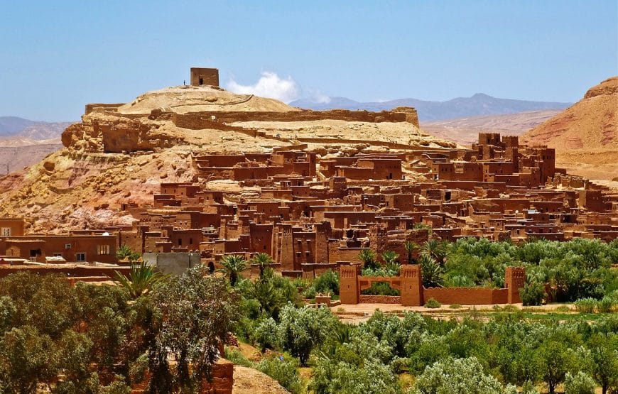 On the first day of the tour, our professional driver will pick you up from the airport and take you to your Hotel/Riad in Marrakech. Dinner and accommodation included.